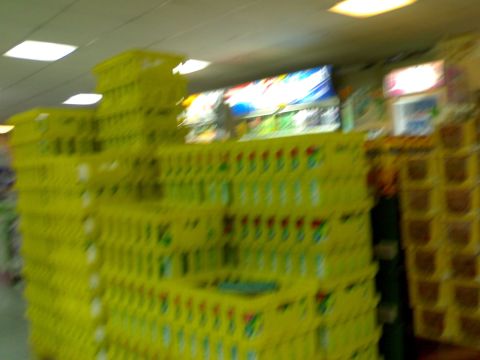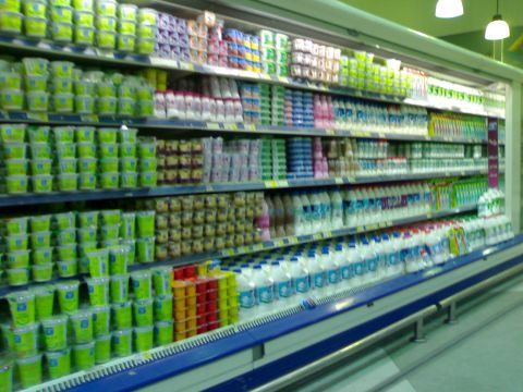 فأجابوني نعم... على ما أعتقد أنهم يجمعون الرجيع خاصة و أن سبتات اللبن الجديدة جاهزة للترتيب في الرفوف كما ترون في الصور.