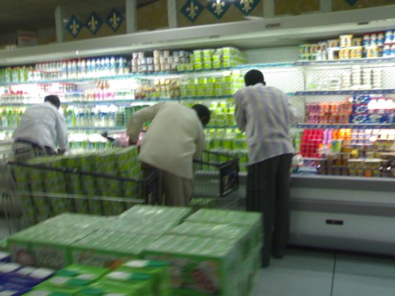 الشخصين الذين يقومون بتعبئة العربات إقتربت منهم و سألتهم هذا اللبن قديم؟