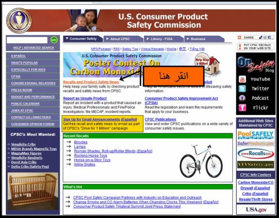 1. ادخل على موقع المفوضية: www.cpsc.gov/index.html