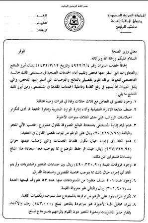 في مستشفى الملك خالد التخصصي للعيون، والذي كشف عن ضعف متابعة الإدارة التنفيذية