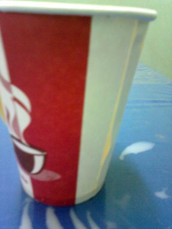 لاحظ تسرب الحليب أسفل الكاسة الورقية !!!!!!!!