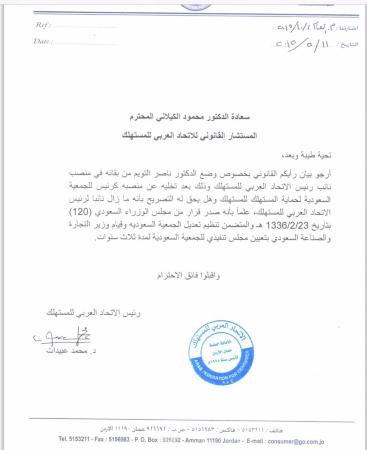 رئيس الجمعية السابق لازال يعرف بنفسه كنائب رئيس الاتحاد العربي للمستهلك والاتحاد يسحب المنصب منه: