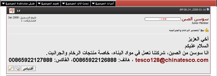 يا الأعزاء،أتا سعاد من الصين.أتشرف بمعرفة الأصدقاء هنا.شكرا لكم.أعمل في الشركة لتصدير الرخام والجرانيت في الصين.وأنا صينية.لغتي العربية ليسةمرتفعة.شكرا علي مساعدتكم.لكم خالص التحياتسعاد