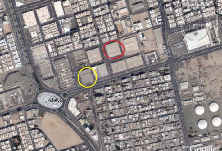 توجد صورة للموقع في المرفقات .. الدائرة الحمراء توضح موقع "متاجر السعودية" أما الدائرة الصفراء فتوضح موقع محل "الباشاوات" أبو ريال لعشرة.