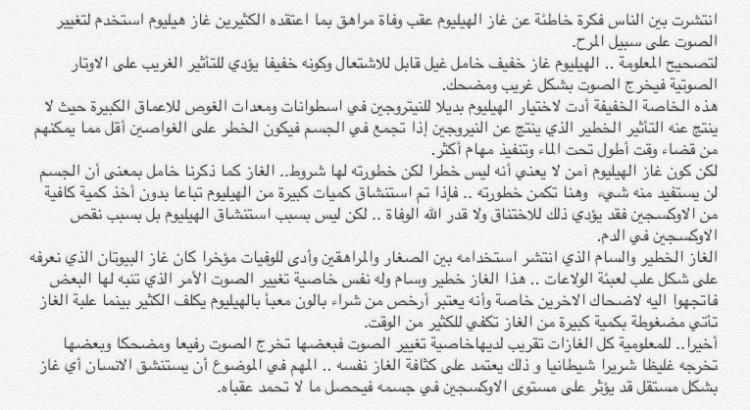افتراضي فيديو : التحذير من إستخدام غاز " الهيليوم " لتغيير الصوت و الضحك !!!!