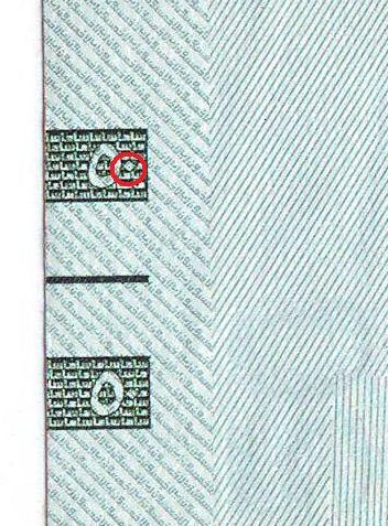 ما فيها خطأ و لا شيء .. كل ما في الموضوع إن الصفر حجمه شوي صغير و ضايع مع الزخرفة الخلفية .. بالتركيز في الصورة أو بالكشف على الورقة أبو خمسين بمكبر x10 يظهر الصفر بوضوح.