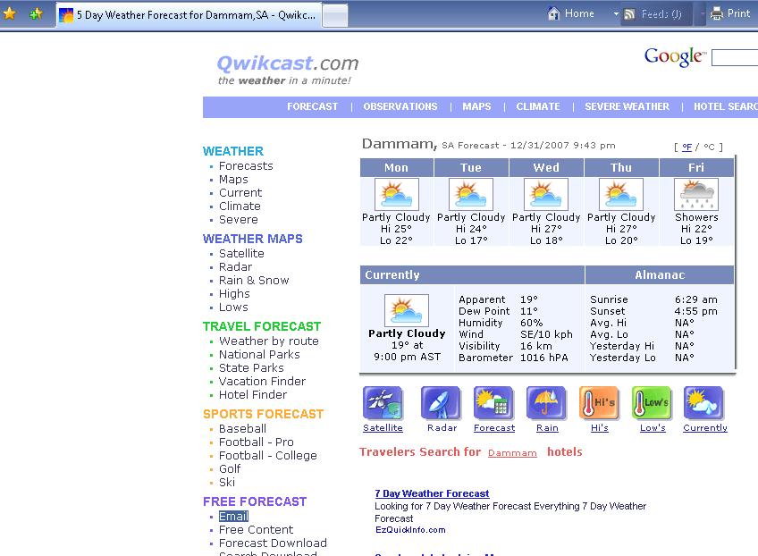 نعم موقع ياهو لاحوال الطقس من المواقع المميزه..وكذلك هذا الموقع الذي يرسل لك على بريدك التوقعات لخمسة ايام لمدينتك مرتين ات رغبت صباحآ ومساء
