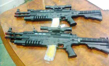 ضبط ألعاب أطفال "رشاشات ومسدسات" أصواتها تقول: "اضرب السيدة عائشة"
