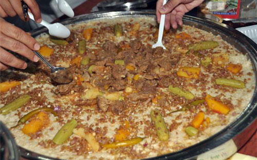 ومن خلف طاولة بيضاء، وقفت المواطنتان لعرض أطباق متنوّعة لأكلات شعبية طبخنها بأيديهن منذ الصباح الباكر، على طريق يُؤدِّي إلى أحد الوجهات السياحيَّة، من الحادية عشرة صباحًا وحتى الرابعة عصرًا «طوال العام» ومن بعد صلاة العصر وحتى قبل أذان المغرب بساعة «خلال شهر رمضان»، حيث ينتظرهن زبائن، استطابوا مذاق أكلاتهن، فاعتادوا الشِّراء منهن يوميًا.