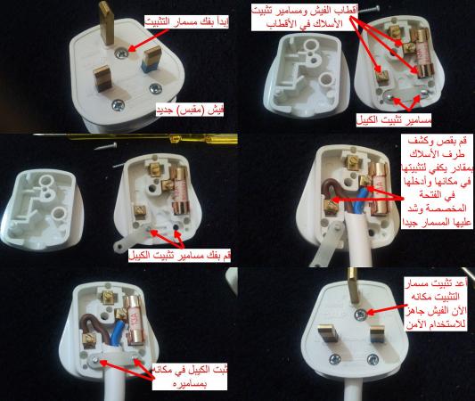 إليكم طريقة تركيب فيش ثلاثي على سلك عادي.. بالصور.