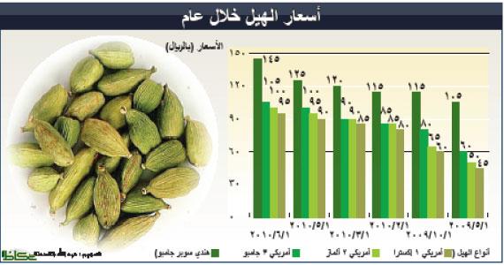 ارتفعت أسعار الهيل بنوعيه الأمريكي والهندي في السوق السعودية بنسبة تتراوح بين 18.75 في المائة إلى 26 في المائة خلال الأيام القليلة الماضية.
