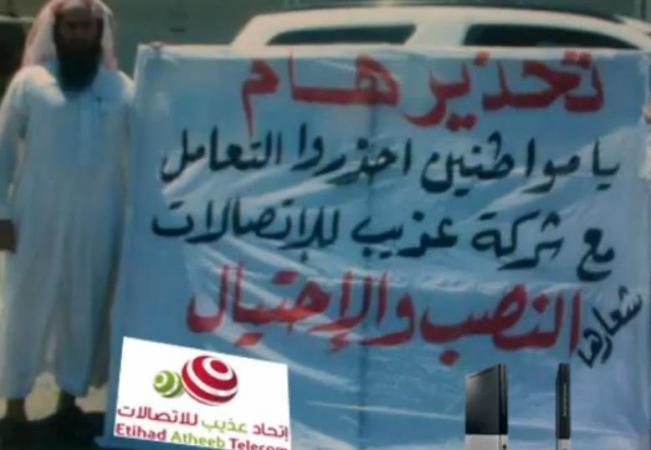 انظر الى هذا الرجل المسكين وبنته واقفون في الشمس لتنبيه الناس من سوء خدمات هذه الشركه وتحذير اخوانهم المسلمين من ظلم الشركه للعملاء ينبهون اخوانهم واخواتهم عن الشركه هذه ومع الاسف نجد الكثير من يقف مع هذه الشركه وصدقوني سوف يأتي يوما من دفاعكم عنها تندمون من دعوه اخ لك في الاسلام على مدحك لها وثنائك عليها وهي شركة لا تعرف ماهو الانترنت بالفعل ولا تعرف معنى العميل ويكفي الخساره في الربع الاول اكثر من 300 مليون ريال يعني ربع راس مالها والسبب والجهود في اخواننا المتبقين