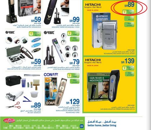 فذهبت إلى إكسترا لشراء مكينة حلاقة هيتاشي ووجدت سعرها 109 ريال