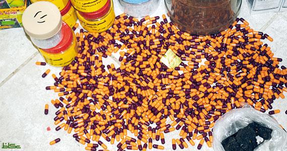 افتراضي مصادرة مهيجات ممنوعة وكبسولات فارغة ومساحيق للتسمين والمساج