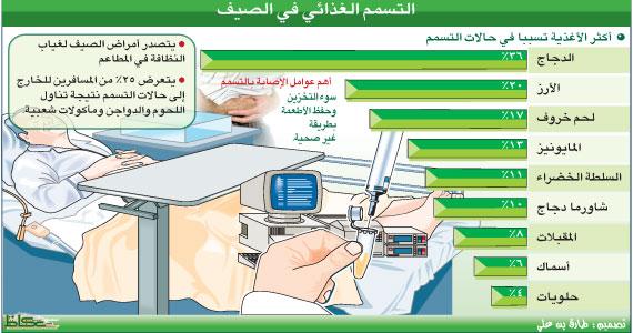 أوضح خبير التغذية العلاجية نائب رئيس الجمعية السعودية لعلوم الغذاء والتغذية سابقا الدكتور خالد علي المدني أن التسمم الغذائي يتصدر أمراض الصيف، حيث تشهد المستشفيات العديد من الحالات بعضها تكون بسيطة وأخرى صعبة تستوجب التنويم، موضحا أن إهمال الاشتراطات الصحية في المطاعم يشكل خطرا على صحة الإنسان سواء في بلده أو عند توجهه إلى الخارج لقضاء إجازته الصيفية.