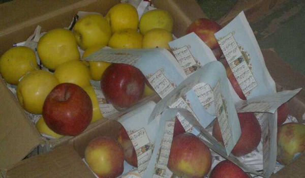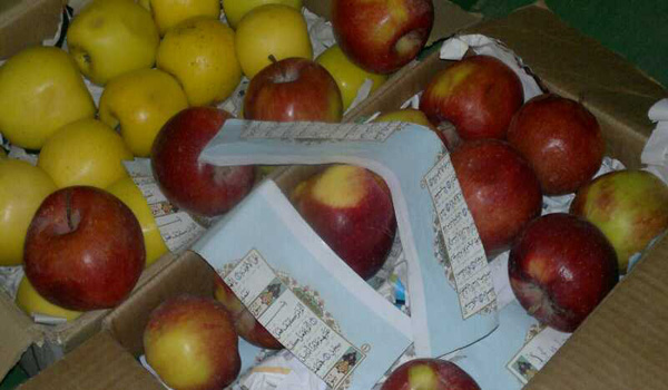افتراضي بالصور .. بائع خضار يتفاجأ بتفاح (إيراني) مغلف بصفحات من القرآن الكريم
