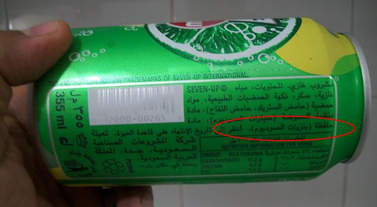 طبعا كل المشروبات تحتوي على المادة الحافظة "بنزوات الصوديوم" بالإضافة للمواد الأخرى حسب المشروب..