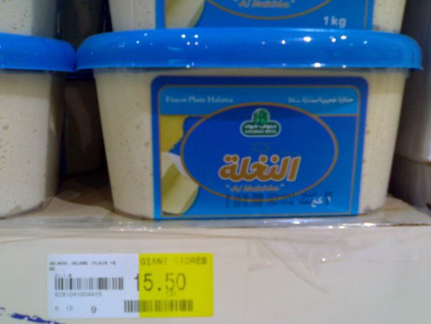 حلاوة حلواني النخلة .. عبوة 1ك كانت في حدود الـ 12 ريال .. اليوم غيروا شكل العبوة و خلوها 15.50 ريال (عرض خاص في المخازن) يعني ممكن تكون أعلى في أماكن أخرى.